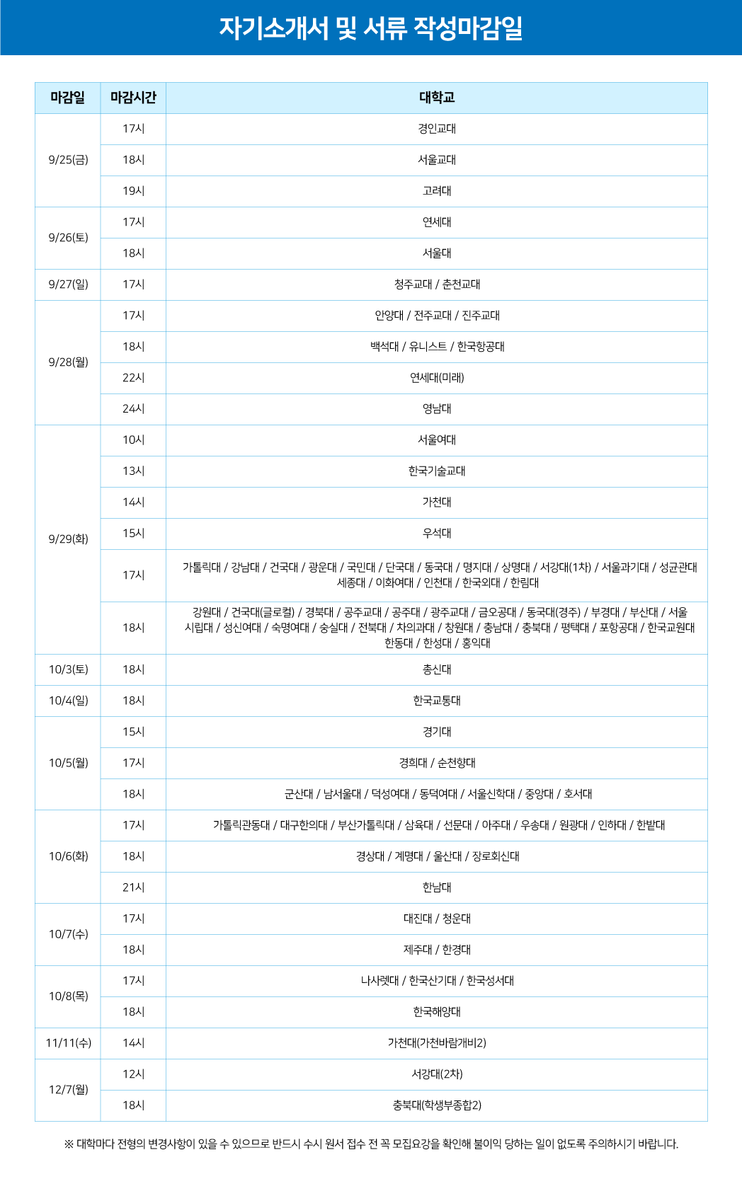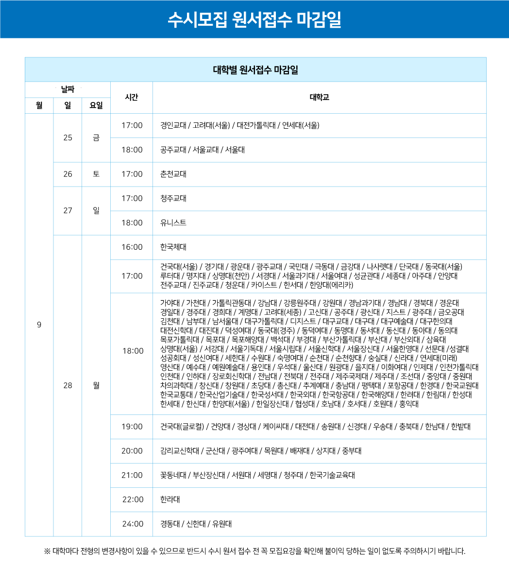 2026.09.07 ~ 2026.09.11 2027학년도 수시모집