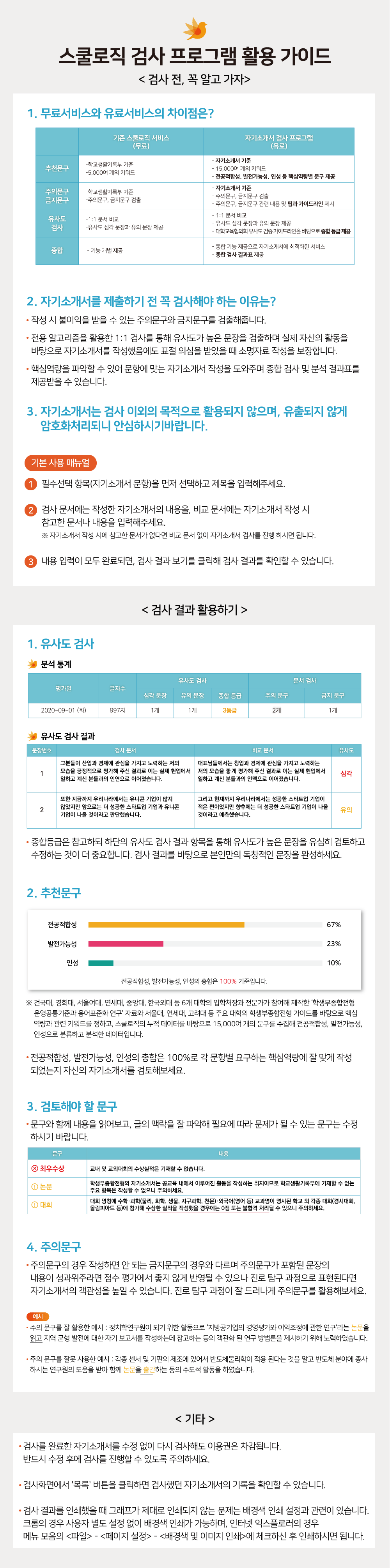 자소서, 독후감이나 소논문등을 작성하는 수험생들에게 추천하며, 대학생이나 직장인 등 일반 성인들 또한 사용 가능한 서비스입니다.
