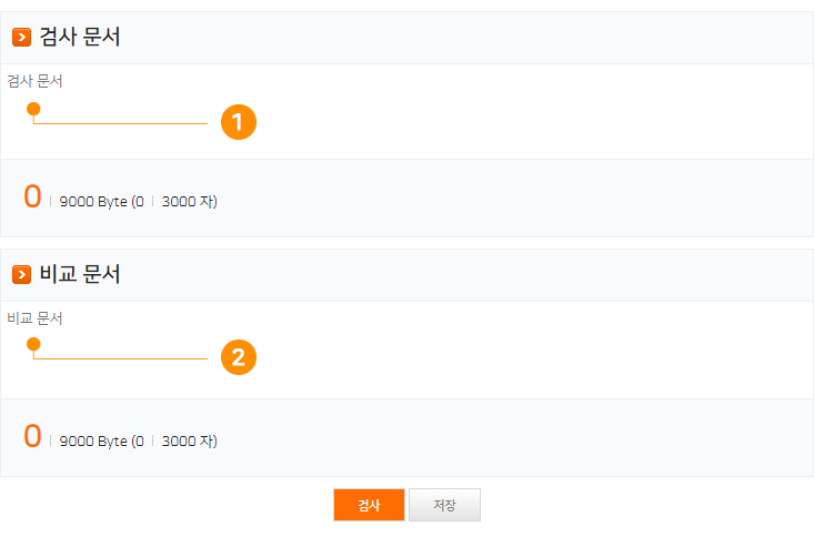 1번에는 본인이 검사하고자 하는 문서를, 2번에는 비교하고자 하는 문서를 작성합니다.